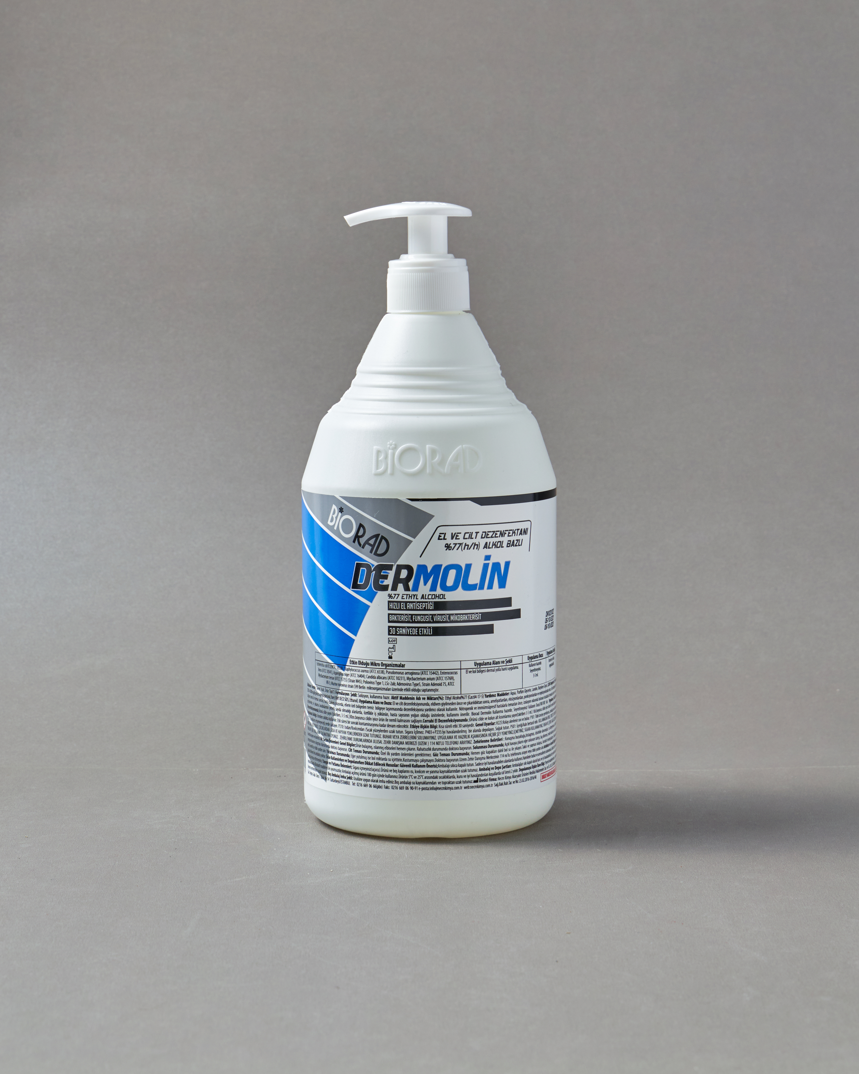 BIORAD Dermolin, %77 alkol içeren alkol bazlı formülü sayesinde el ve cilt üzerinde kısa sürede etkili antisepsi sağlar. Sağlık çalışanlarının el hijyeni, hasta teması öncesi ve sonrası uygulamalar ile genel hijyen gerektiren alanlarda güvenle kullanılmak üzere geliştirilmiştir. Hastaneler, klinikler, poliklinikler, laboratuvarlar ve yoğun bakım ünitelerinde rutin el ve cilt antiseptiği olarak tercih edilir. Cilt yumuşatıcı ve koruyucu bileşenleri sayesinde sık kullanıma uygundur ve kuruluk hissini azaltmaya yardımcı olur. Dermatolojik olarak test edilmiş yapısıyla profesyonel kullanıma uygun, güvenilir bir hijyen çözümü sunar.